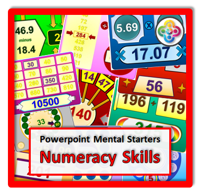 40 Exciting and Colourful Powerpoint Mental Starters to Develop Numeracy Skills.